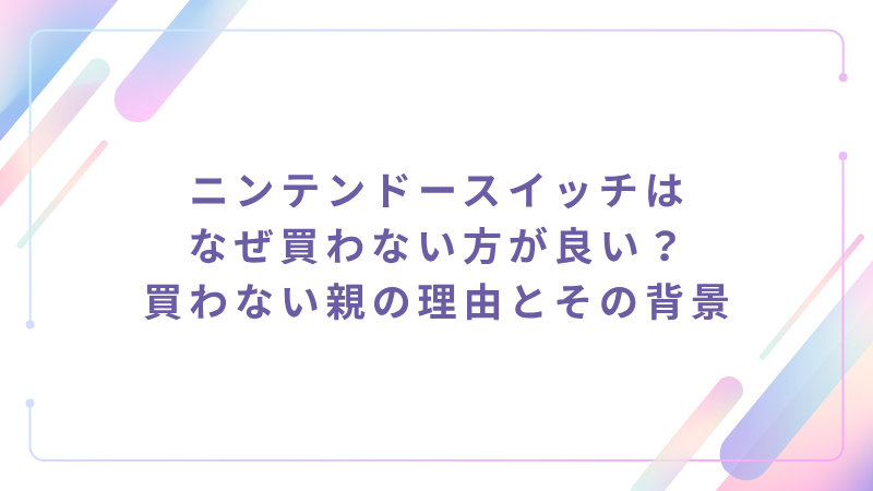 ニンテンドースイッチはなぜ買わない方が良い?買わない親の理由とその背景