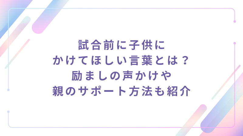 試合前に子供にかけてほしい言葉とは?励ましの声かけや親のサポート方法も紹介