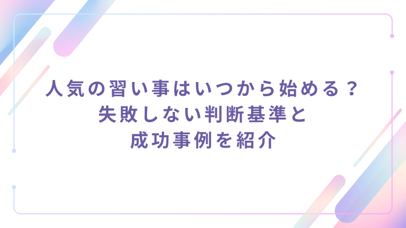 人気の習い事はいつから始める?失敗しない判断基準と成功事例を紹介