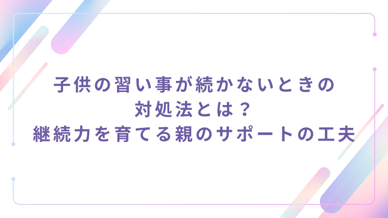 子供の習い事が続かないときの対処法とは?継続力を育てる親のサポートの工夫