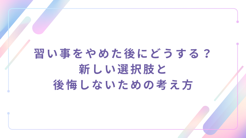 習い事をやめた後にどうする?新しい選択肢と後悔しないための考え方