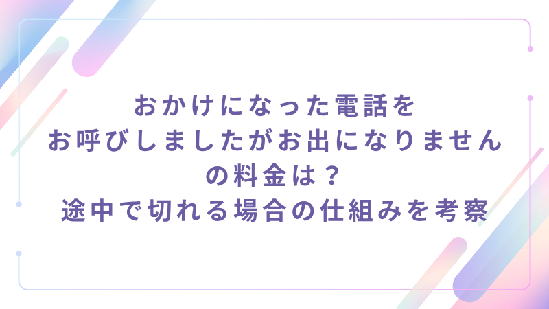 おかけになった電話をお呼びしましたがお出になりませんの料金は?途中で切れる場合の仕組みを考察